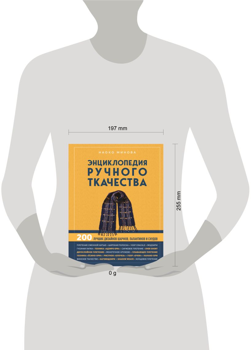 Автор энциклопедии, Наоко Миновой, собрала огромную коллекцию дизайнов для любого времени года! Эта книга станет настольной, потому что в ней вы найдете все необходимое, чтобы соткать аксессуары, которые будут радовать долгие годы. Здесь вы найдете все: подробные инструкции и схемы, описание базовых и сложных техник, советы по декорированию, окрашиванию нитей и комбинации пряжи, мастер-классы по ткачеству на станке, дощечках и без специальных инструментов. Японский мастер проведет вас по миру удивительных узоров — от классических до самых необычных, включая широкую и узкую полоску, "гусиную лапку", модзири, адзиро-ори, shadow weave и многое другое.