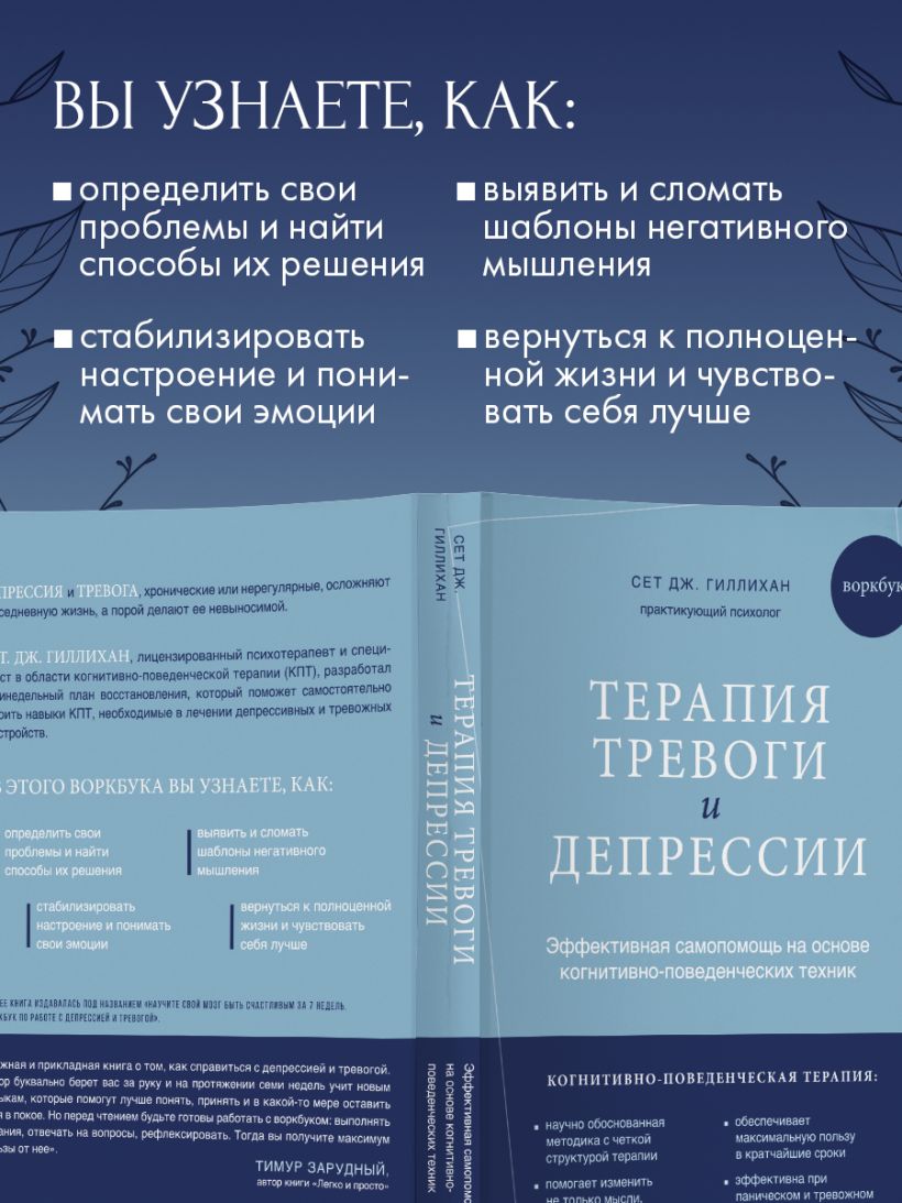 Депрессия или тревога, хронические или нерегулярные, осложняют повседневную жизнь дискомфортными реакциями, а порой делают ее невыносимой. Сет. Дж. Гиллихан, лицензированный психотерапевт и специалист в области когнитивно-поведенческой терапии (КПТ), разработал семинедельный план восстановления, который поможет самостоятельно освоить навыки КПТ, необходимые в лечении депрессивных и тревожных расстройств.