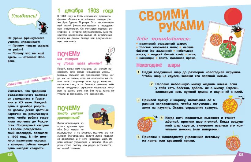 Подарок для вашего ребенка к любому празднику! Большая книга головоломок и поделок с яркими картинками и увлекательными заданиями подойдет мальчикам и девочкам 6, 7, 8, 9 лет. С ее помощью легко развить внимание и память, логическое мышление и интеллект, речь и воображение, и даже чувство юмора. А еще — начать изучать английский язык и освоить несложные приемы релакса от психологов. Роскошное подарочное издание украсит домашнюю библиотеку и станет прекрасным подарком на день рождения, 1 сентября, 8 марта, 23 февраля, Новый год, выпускной в детском саду, да и просто без повода. Внутри — ребусы, шарады, головоломки, забавные анекдоты, интересные исторические факты и викторины. Ребенок с удовольствием будет заниматься по книжке и самостоятельно, и с друзьями, одновременно формируя позитивное отношение к учебе и расширяя кругозор. Эта книга — отличный способ организовать полезный досуг детей.