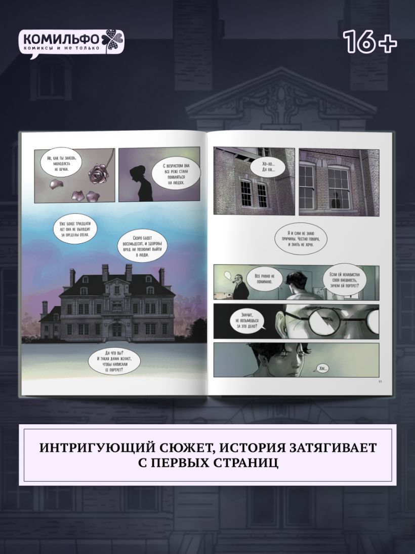 Мистика, романтика, детектив и жуткие семейные тайны в новой главе красивейшей манхвы! Мрачная атмосфера отеля «Южные врата» пугает Юна — он все еще пленник госпожи Чжонхвы. Ему не терпится узнать продолжение истории жизни Марисы — загадочной хозяйки отеля. Художник понимает: раскрыты далеко не все загадки старого особняка. Жуткие звуки раздаются по ночам, и поговаривают, что в окрестностях отеля видели женщину с окровавленными руками… Удастся ли художнику Юну выбраться на свободу? Ведь с каждым днем он все больше попадает под опасное обаяние Марисы. Популярный корейский вебтун! Яркая фольга, мелованная бумага, атмосферный рисунок. Подтверждена экранизация! (Хан Джэ-рим — режиссер популярного сериала на Netflix «Шоу восьми»).