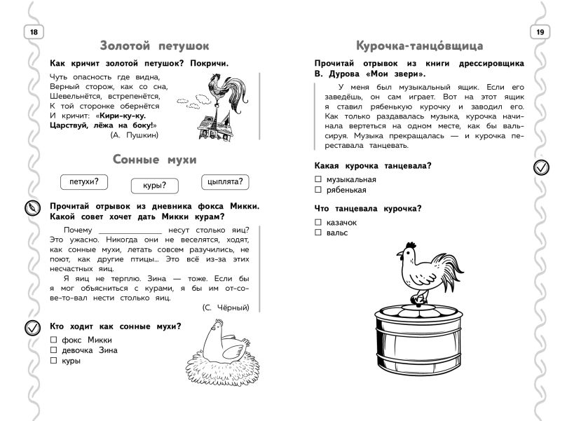 Задача развивающего тренажёра от издательства «ЭКСМО» — сделать из первоклассника настоящего читателя, который не только бегло читает, но и понимает прочитанное. В пособии собраны наиболее интересные тексты для первоклассников на стыке литературного чтения, русского языка и окружающего мира. Некоторые из них взяты из бестселлеров детской литературы, другие написаны автором, кандидатом филологических наук А. А. Бондаренко, признанным специалистом в области русской словесности и букваристики.