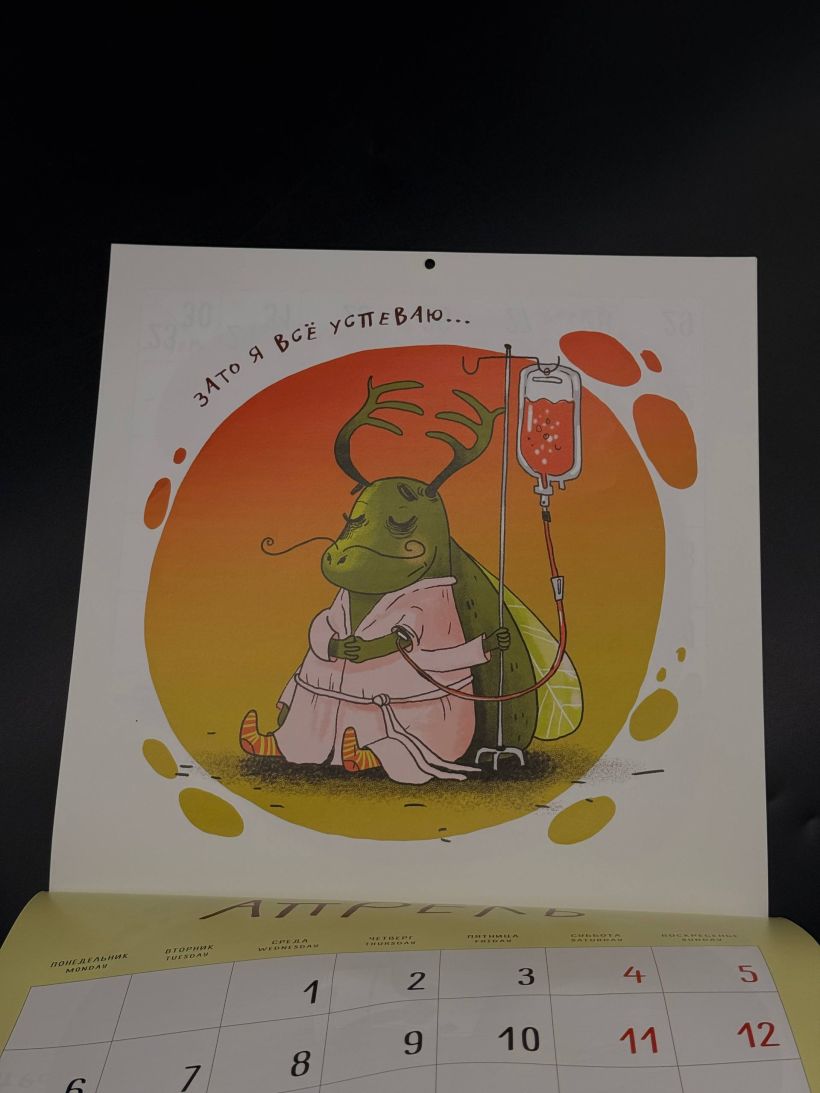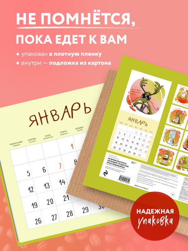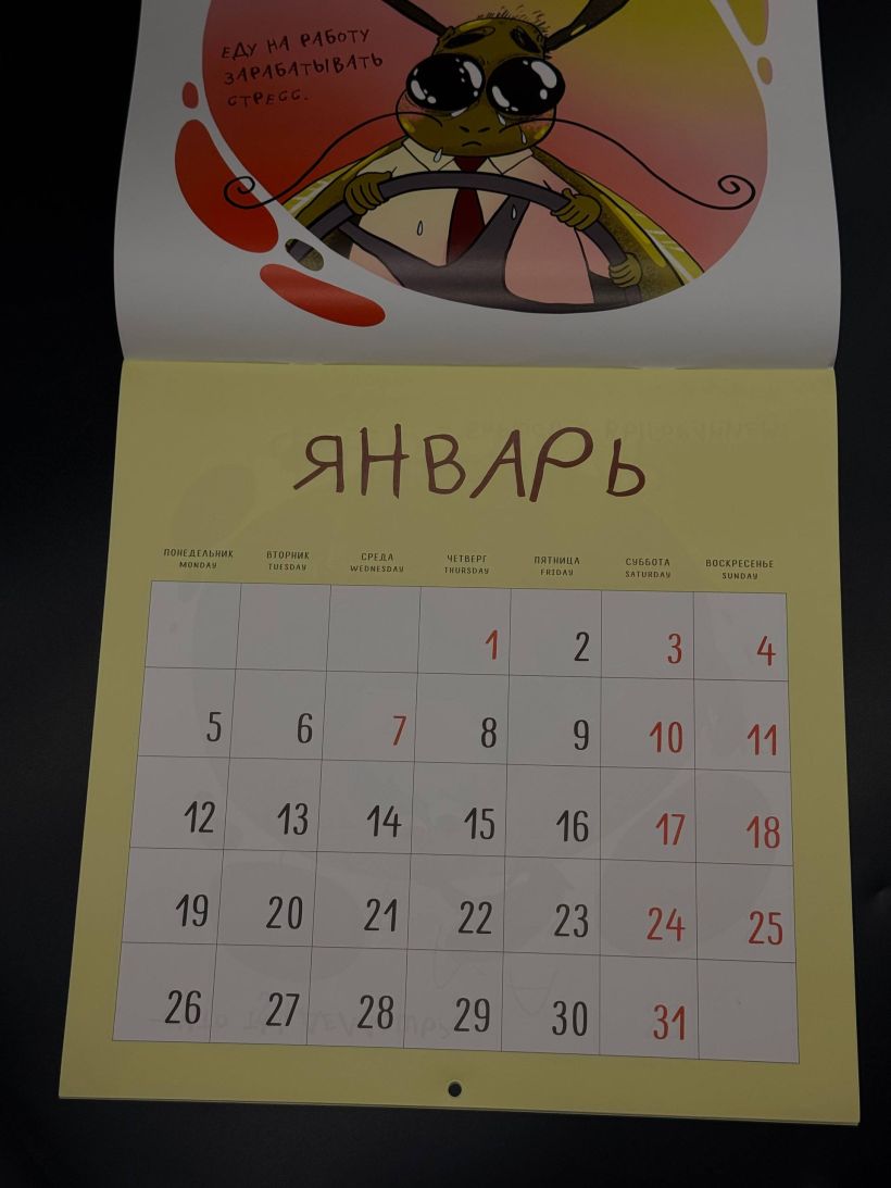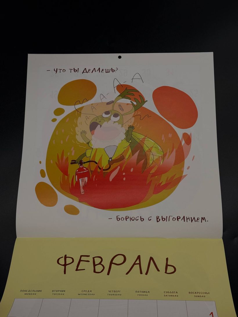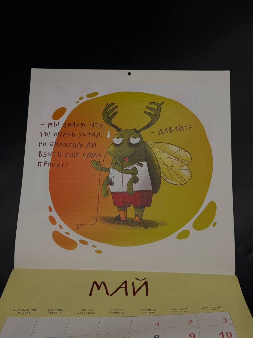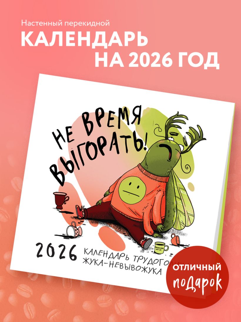 Календарь «Не время выгорать!» — это 12 ярких и смешных иллюстраций о жуке, который выгорел на работе и больше не вывозит… Он пытается выспаться, собраться с силами и обещает быть продуктивным в 2026 году!