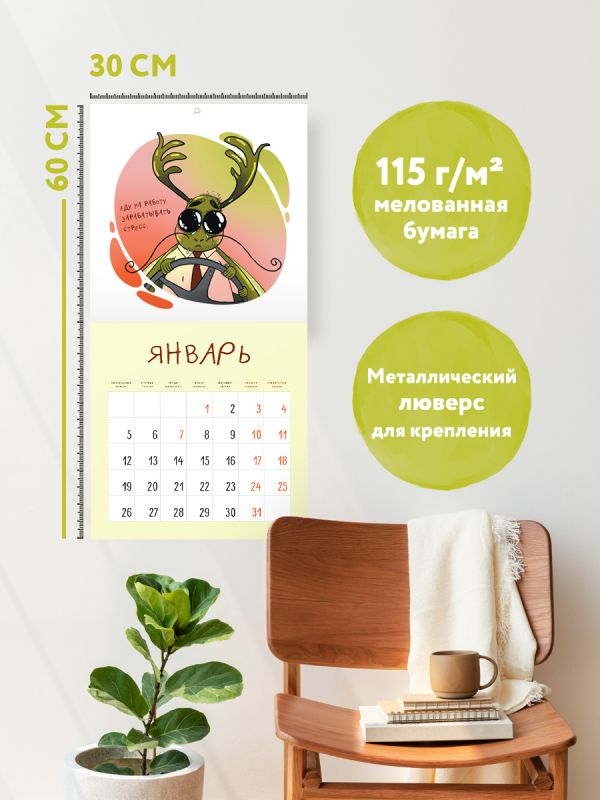 Наши настенные календари отличаются высоким качеством исполнения! Тщательно подобранные иллюстрации, напечатанные на матовой бумаге высочайшего качества, станут настоящим украшением дома, а в календарной сетке найдется место для ваших планов: большие клетки позволят делать записи и организовать свой год! В календаре также отмечены все государственные праздники.