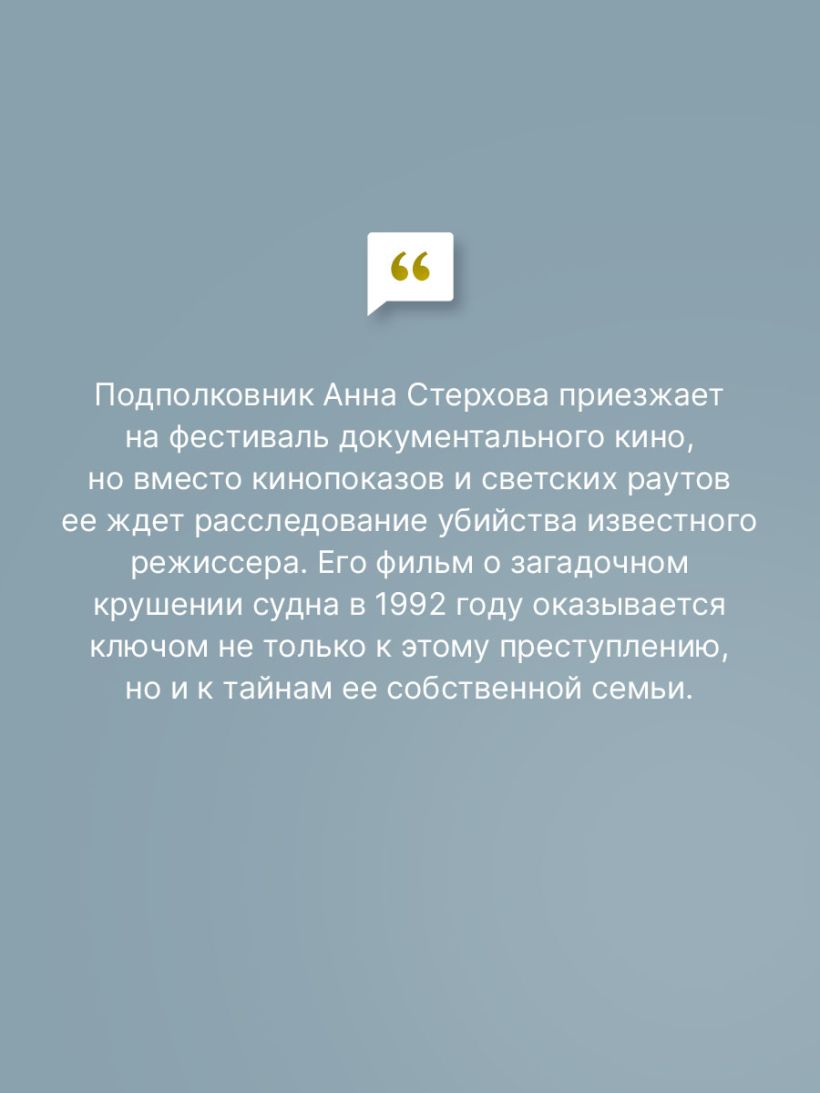 Анна Стерхова получает неожиданное приглашение на фестиваль документального кино «Тихоокеанские хроники». Что ждет ее на далеком побережье? Отдых? Новые знакомства? Или нечто большее, чем просто работа в жюри? Встреча с Румико, журналисткой из Владивостока, запускает цепочку событий, которые переворачивают жизнь Анны. Убийство режиссера Воронина становится ключом к разгадке тайны, связанной с исчезновением океанографического судна и гибелью неизвестного мужчины тридцать лет назад. В атмосфере подозрений и страха Анна распутывает клубок лжи, предательства и давно забытых секретов…