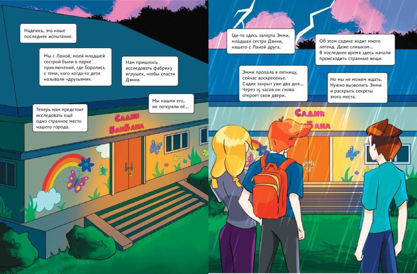 Хочешь посетить страшный детский сад БанБана? Персонажи популярной компьютерной игры ждут тебя на страницах нового комикса! А вместе с ними — брат и сестра Алекс и Лана, уже не раз сбегавшие от коварных монстров. Повезет ли им на этот раз?