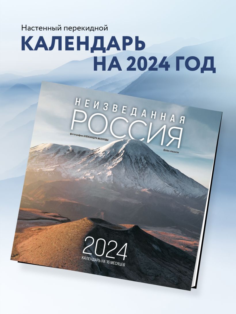 В календаре подобраны невероятные фотографии разных уголков нашей страны: удивительные вулканы Камчатки, просторы Алтая, красоты Якутии и многое другое. Невероятная природа нашей страны точно вдохновит вас на увлекательное и атмосферное путешествие по России. Автор снимков — известный travel-фотограф и основатель сообщества Russian Explorers Александр Мазуров. Посмотрите на Россию его глазами, ведь Александр видит нашу страну так, что оторваться от снимков невозможно!