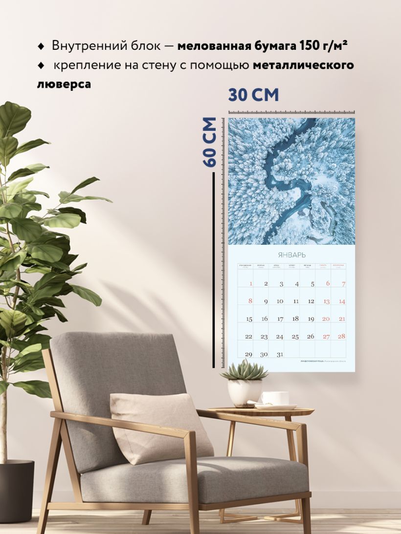 Наши настенные календари отличаются высоким качеством исполнения! Тщательно подобранные иллюстрации, напечатанные на глянцевой бумаге высочайшего качества, станут настоящим украшением дома, а в календарной сетке найдется место для ваших планов: большие клетки позволят делать записи и организовать свой год! В календаре также отмечены все государственные праздники.