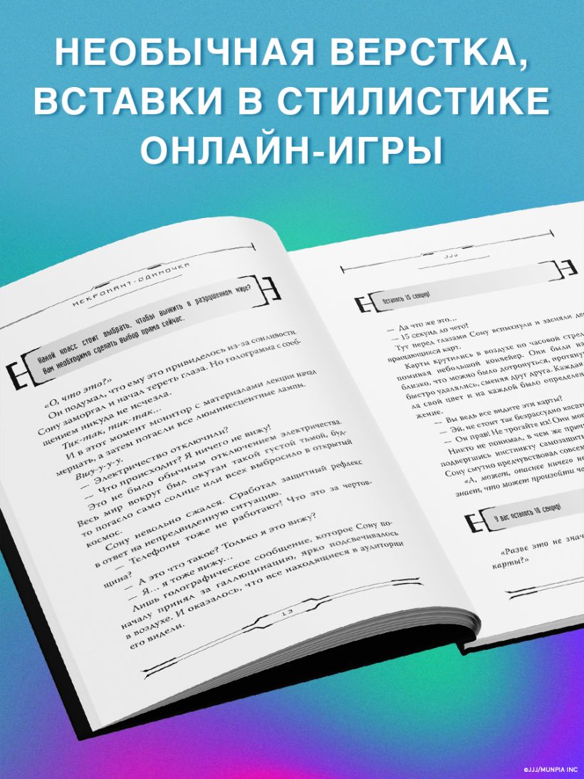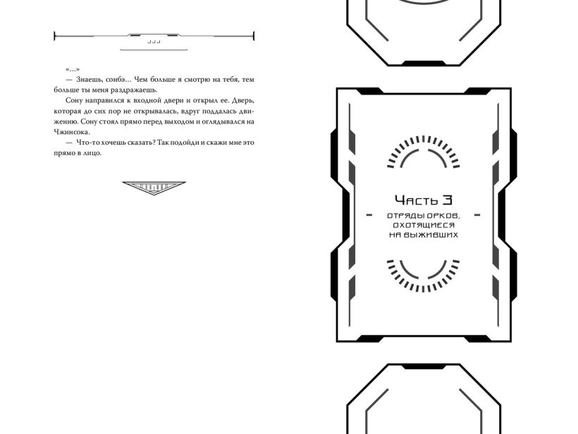 Отдельный поклон тем людям, что создавали внутреннее оформление книги. Выдененные блоки с "системными" уведомлениями - это очень удобно! Не нужно напрягаться, пытаясь определить, где заканчивается входящая информация и начинаются размышления героев о её содержимом. И выглядит красиво.