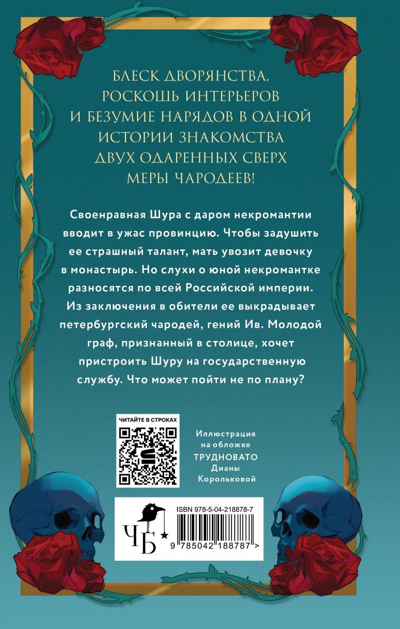 Своенравная Шура с даром некромантии вводит в ужас провинцию. Чтобы задушить её страшный талант, мать увозит девочку в монастырь. Но слухи о юной некромантке разносятся по всей Российской империи. Из заключения в обители её выкрадывает петербургский чародей, гений Ив. Молодой граф, признанный в столице, хочет пристроить Шуру на государственную службу. Что может пойти не по плану?
