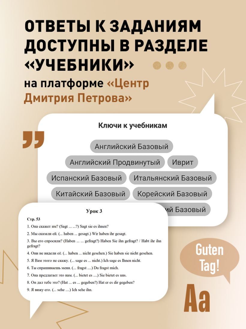 Это серия самоучителей от знаменитого полиглота и синхронного переводчика Дмитрия Петрова. Он уверен: чтобы заговорить на иностранном языке, совсем не обязательно посвящать его изучению десятилетия. Гораздо важнее освоить базовые алгоритмы, плюс — минимально необходимый для общения запас слов.