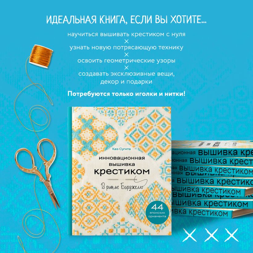 Известный японский дизайнер Каэ Сугита представляет уникальные дизайны для вышивания крестиком и счетным стежком, вдохновленные невероятной техникой Барджелло. Отправьтесь вместе с автором в увлекательное путешествие по геометрическим формам и оригинальным цветовым решениям, которые сделают ваш проект уникальным. От простых узоров до сложных композиций — вы сможете воплотить любой проект, даже будучи новичком в вышивке!