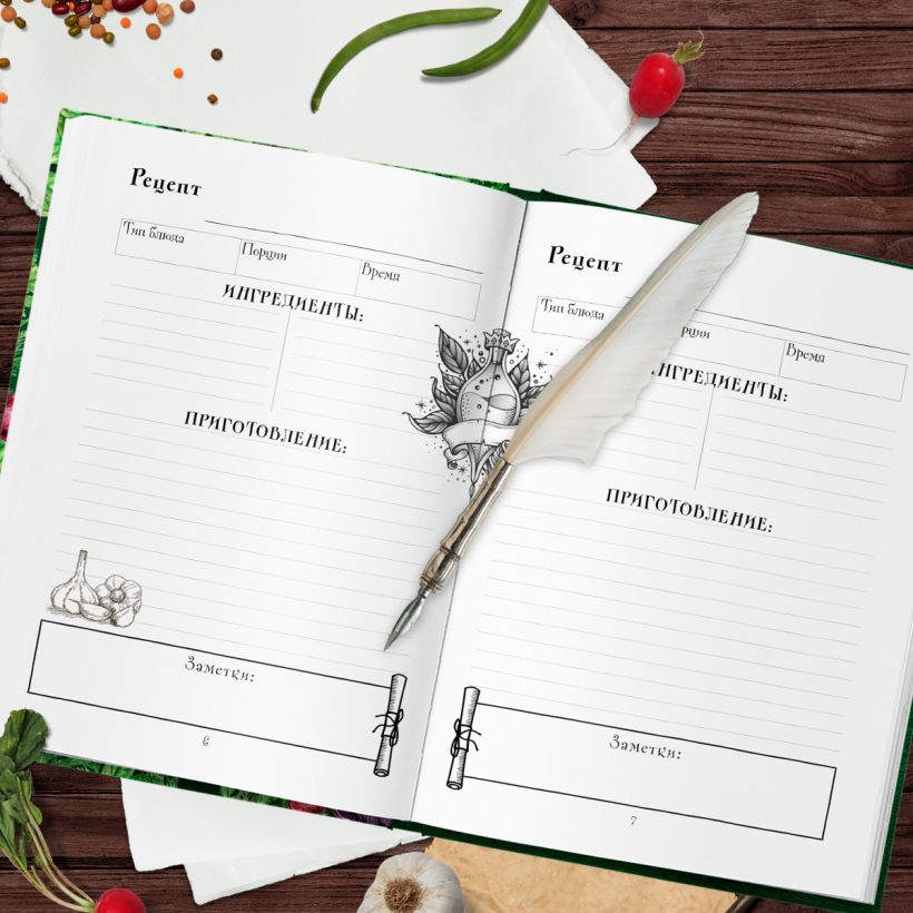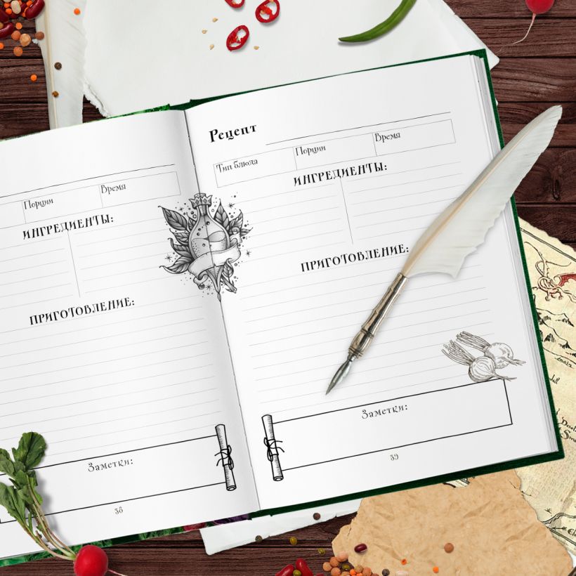 Любимая вселенная всегда рядом. Книга для записи рецептов в тематике вселенной Хоббита сделает такую обыденную вещь, как приготовление еды, особенным ритуалом с капелькой магии. Внутри вас ждет волшебный и удобный дизайн, который поможет распределить рецепты по типу, указать, сколько времени потребуется блюду, пока вы отправитесь в путешествие туда и обратно. О такой книге мечтал бы даже Гэндальф.