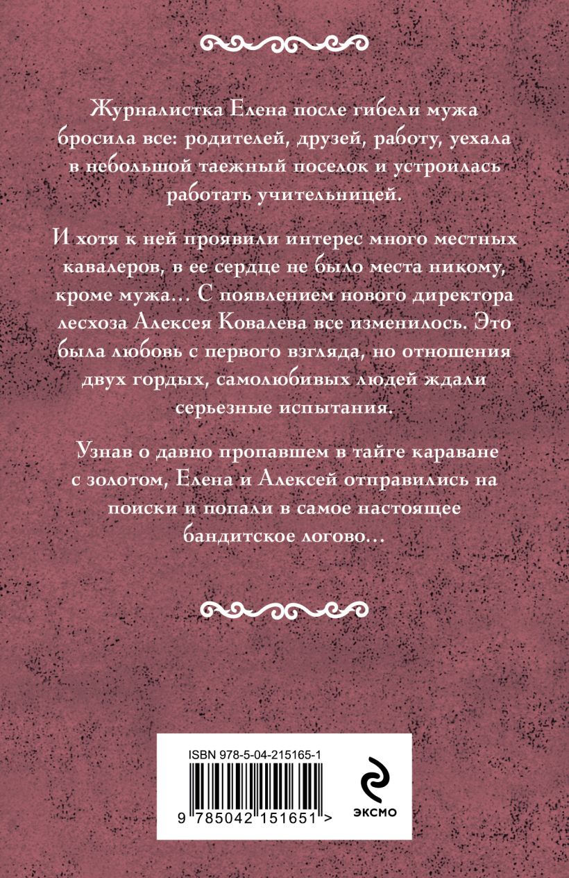 Журналистка Елена после гибели мужа бросила все: родителей, друзей, работу, уехала в небольшой таежный поселок и устроилась работать учительницей. И хотя к ней проявили интерес много местных кавалеров, в ее сердце не было места никому, кроме мужа… С появлением нового директора лесхоза Алексея Ковалева все изменилось. Это была любовь с первого взгляда, но отношения двух гордых самолюбивых людей ждали серьезные испытания. Узнав о давно пропавшем в тайге караване с золотом, Елена и Алексей отправились на поиски и попали в самое настоящее бандитское логово…