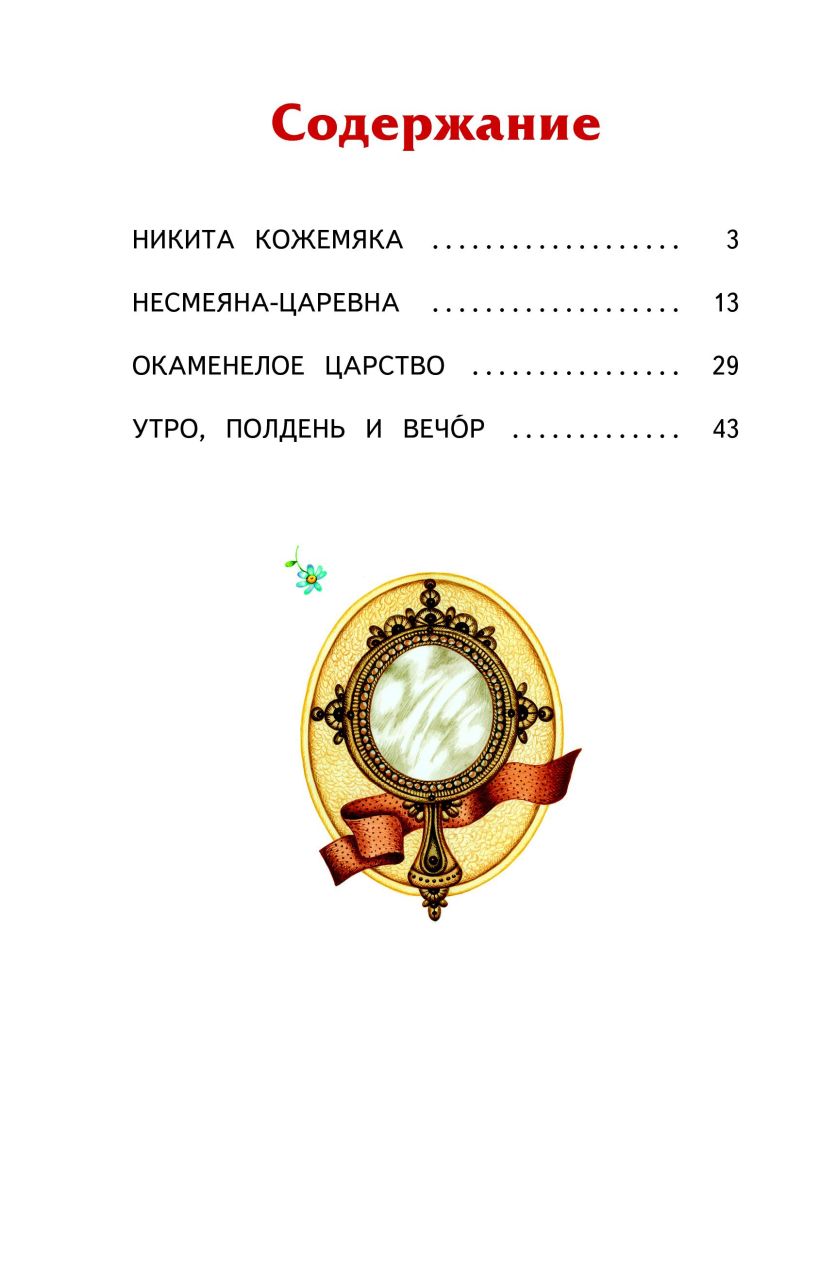 В сборник любимых волшебных сказок вошло 4 произведения: «Никита Кожемяка», «Несмеяна-царевна», «Окаменелое царство», «Утро, Полдень и Вечо́р».