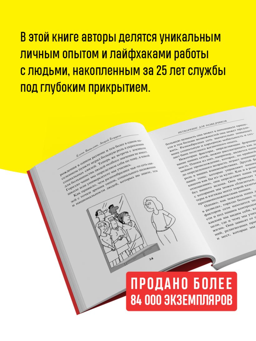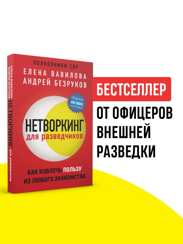 ОБНОВЛЕННОЕ ИЗДАНИЕ БЕСТСЕЛЛЕРА «НЕТВОРКИНГ ДЛЯ РАЗВЕДЧИКОВ». КНИГА ОФИЦЕРОВ ВНЕШНЕЙ РАЗВЕДКИ ЕЛЕНЫ ВАВИЛОВОЙ И ЕЕ МУЖА АНДРЕЯ БЕЗРУКОВА, ДОЦЕНТА КАФЕДРЫ ПРИКЛАДНОГО АНАЛИЗА МЕЖДУНАРОДНЫХ ПРОБЛЕМ МГИМО. ПРОДАНО БОЛЕЕ 50 000 ЭКЗ. Офицеры разведки Елена Вавилова и Андрей Безруков стали известны во всем мире, когда их арестовали в США в 2010 г. Позднее они смогли вернуться в Россию. В этой книге авторы делятся уникальным личным опытом работы с людьми, накопленным за 25 лет службы под глубоким прикрытием. Книга поможет вам стать дизайнером собственного человеческого окружения и успешно использовать связи для достижения целей в жизни и бизнесе. Не ставя своей задачей сделать из читателя разведчика (хотя, возможно, кого-то и вдохновит!), авторы научат разбираться в людях и создавать долгосрочные продуктивные отношения. Они расскажут, как управлять собственной человеческой «экосистемой», в том числе: - как быстро оценить человека, чтобы правильно выстроить отношения с ним; - как стратегически строить сеть контактов; - как эффективно заводить и развивать связи; - как систематически поднимать статус в обществе; - как быстро укрепить свою позицию в новой организации; - как создать круг надежных друзей и, возможно, найти спутника или спутницу. Цитаты из книги: «Разведчики зациклены на работе с умными людьми, а умный человек распознает неискреннюю лесть, даже если в глубине души она ему нравится». «Вполне предсказуемо, что в голове у человека, с которым вы знакомитесь, сначала мелькнет: "Кто он такой?" Он тут же мысленно начнет процесс проверки, подобный тесту Опасен-Интересен-Сложен, который мы описали раньше. Ваша задача — успешно пройти такую проверку». «Надеемся, что ваши планы, связанные с той или иной организацией, не ограничиваются лишь насущными проблемами. Нет смысла тратить месяцы и тем более годы своего драгоценного времени на развитие отношений, если у вас нет долгосрочных планов влияния на будущие корпоративные решения».