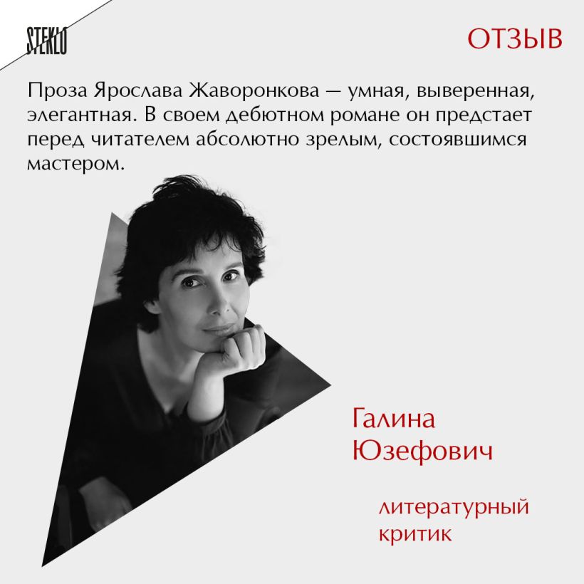 «Проза Ярослава Жаворонкова — умная, выверенная, элегантная. В своем дебютном романе он предстает перед читателем абсолютно зрелым, состоявшимся мастером».