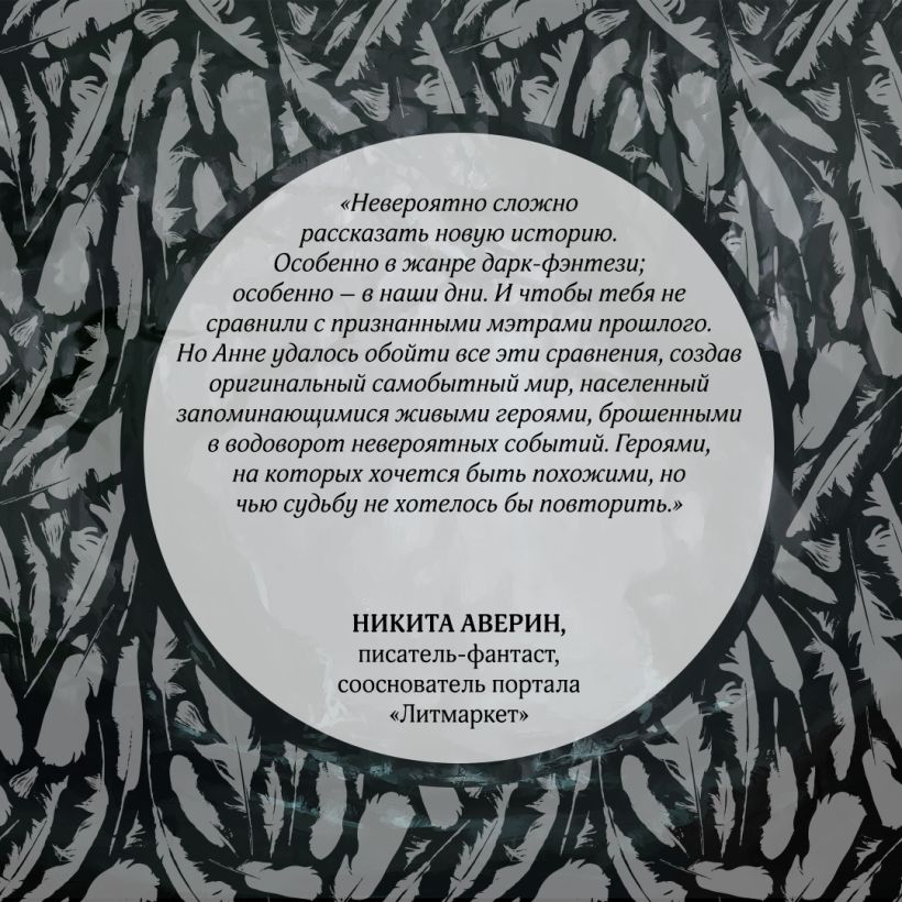 Автор щедрыми мазками рисует мрак и ужас. Ритм повествования порадовал; Анна открывает одну дверь, затем будто оставляет читателя с вопросами, чтобы открыть другую.