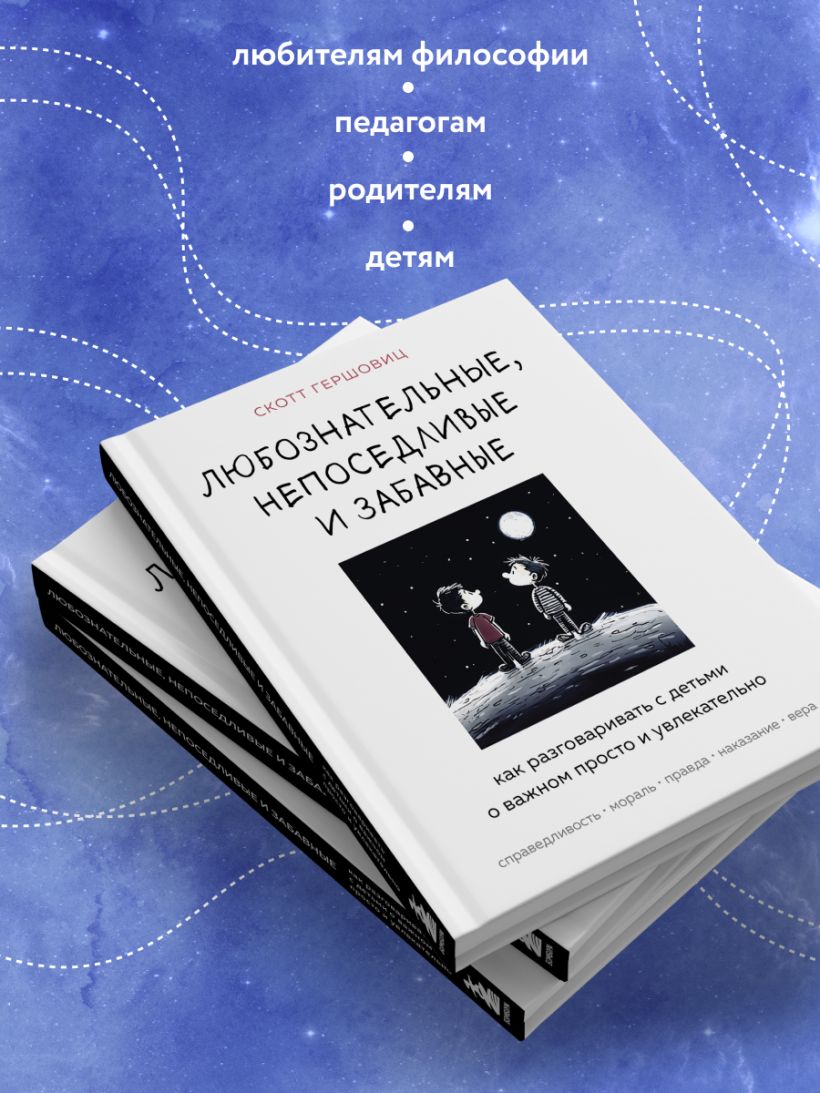 Современный философ и отец двух сыновей Скотт Гершовиц уверен: самые недооцененные философы — дети. Со своими любознательными мальчиками он вновь задумался над вопросами, ответы на которые когда-то казались очевидными. Вместе они обсудили такие важные философские темы, как наказание, власть, мораль, справедливость, существование Бога. А помогли им в этом Платон, Аристотель, Кант и другие гении мысли.
