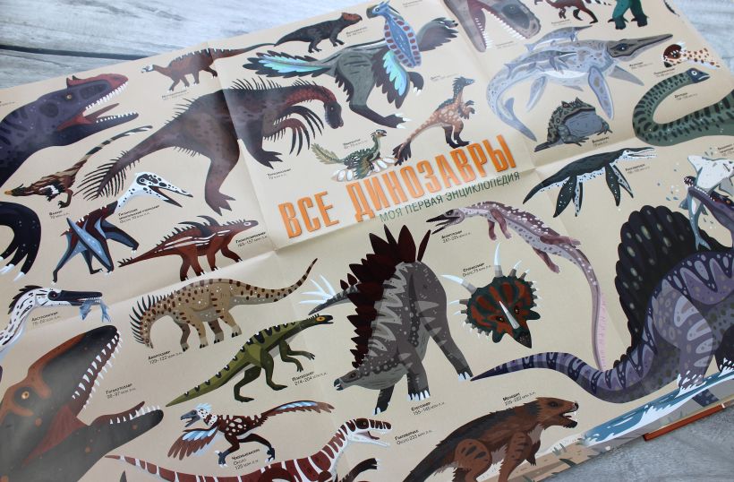 А ещё в комплекте с книгой идёт огромный красочный постер с 32 самыми интересными представителями доисторической эпохи.