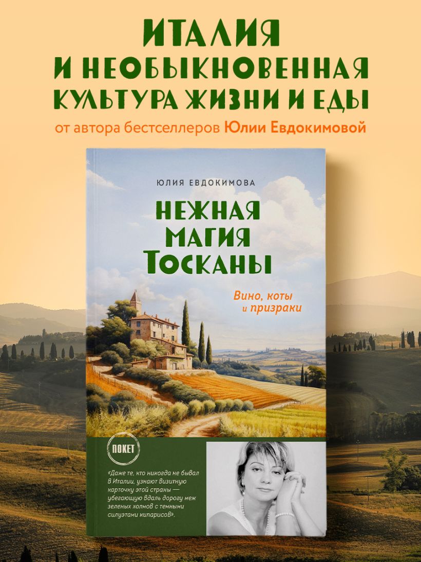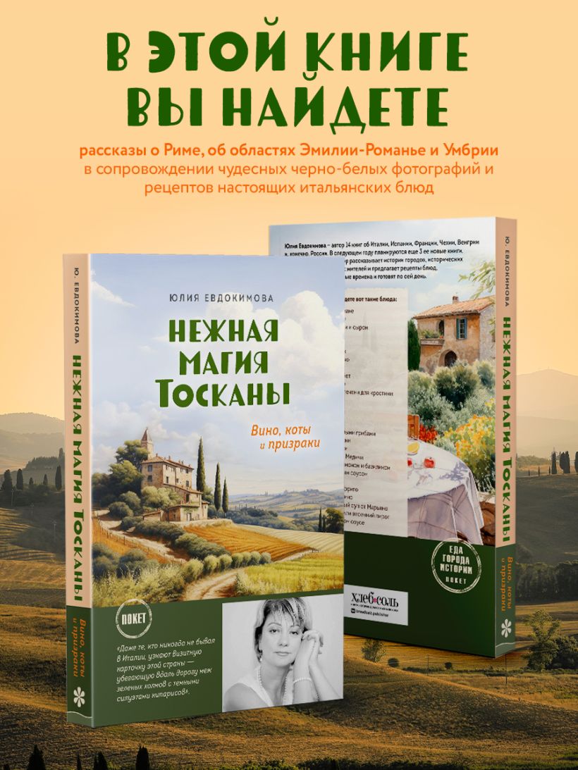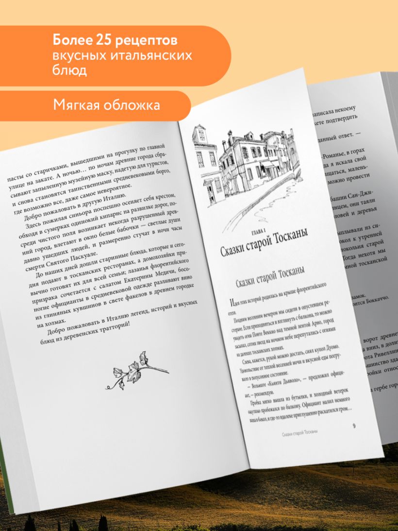 В ожидании новых путешествий откройте книгу и шагните со страниц на дорогу, петляющую среди холмов, с темными силуэтами кипарисов и башнями средневековых городков на горизонте. Окунитесь в зелень виноградников, распахните ставни в старом дворце, пока туман уплывает за далекие холмы. Испеките лазанью флорентийского призрака. Почувствуйте нежную магию Тосканы!