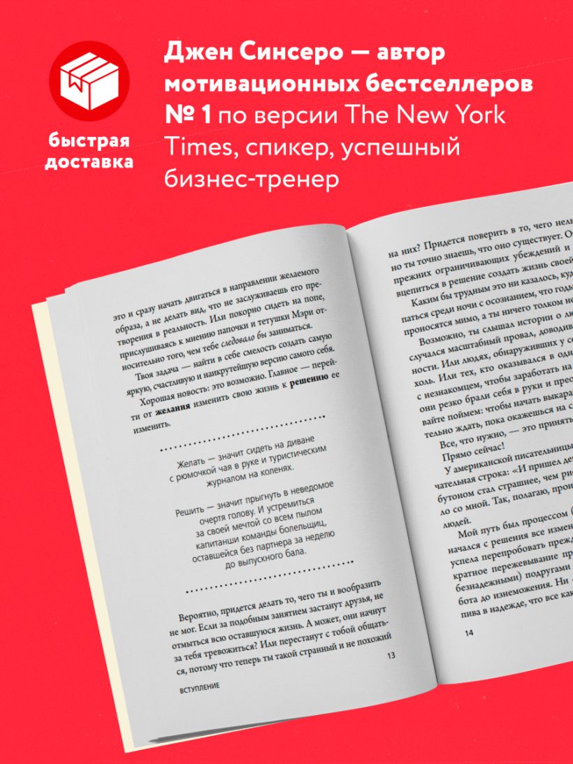 Как найти смелость и воплотить в жизнь счастливую версию самого себя? Как изменить привычный образ мыслей, чтобы перевернуть реальность? Что будет, если прекратить слушать окружающих и начать прислушиваться к себе? На эти и другие жизненные острые вопросы отвечает Джен Синсеро в своём культовом безапелляционном бестселлере по саморазвитию. 25 проверенных автором методик преображения жизни. Искромётный язык, лёгкий юмор и по-настоящему практические рекомендации. Искренняя и обезоруживающая книга Джен Синсеро вдохновит на реализацию своего потенциала по максимуму!