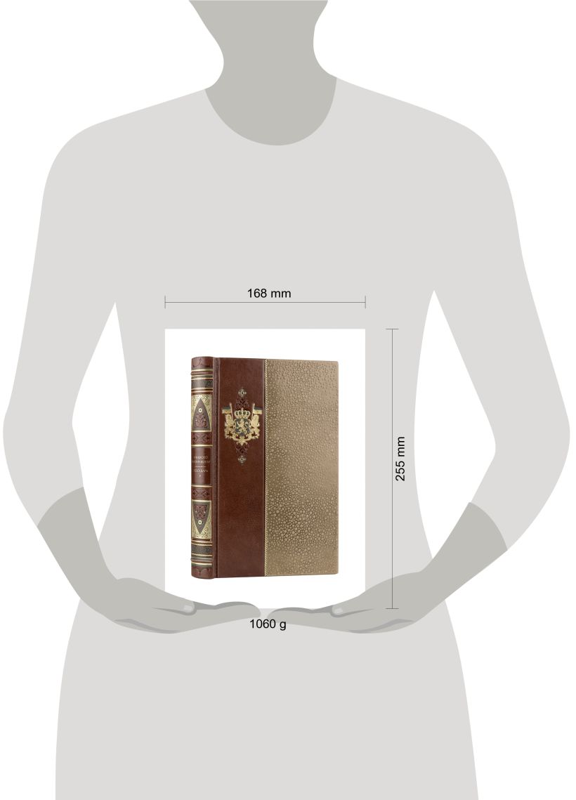 Коллекционное иллюстрированное издание в изящном составном кожаном переплёте ручной работы с торшонированным обрезом. Тираж 2022 года — 2 нумерованных экземпляра. Книги отпечатаны на бумаге премиум-класса и сшиты вручную на льняные нити. Переплёты созданы по традиционной для XIX века технологии из гладкой натуральной кожи двух цветов и украшены тремя видами тончайшего тиснения — золотым, рельефным и красочным. Украшает книгу изысканный тиснёный орнамент, обрамляющий символ серии — корона на пурпурном поле щита, поддерживаемого двумя львами, символами власти. Великолепного качества рельефное тиснение дает особые тактильные ощущения. Форзацы книги сделаны из дизайнерской хлопковой бумаги. Каптал и ляссе из золотистого шёлка. В книгу помещён сертификат, отпечатанный на эко-бумаге, пронумерованный вручную. Великолепный подарок ценителям хорошей книги и мировой истории. Все книги серии оформлены в едином стиле и будут великолепно смотреться на книжной полке.