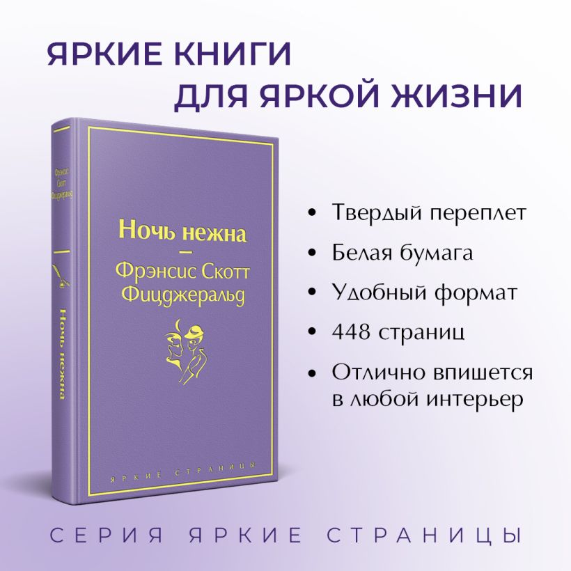 «Ночь нежна» — удивительно тонкий и глубоко психологичный роман американского классика, который многие критики ставят даже выше «Великого Гэтсби», а сам автор называл «самым любимым своим произведением». И это неслучайно: книга получилась во многом автобиографичной, Фицджеральд описал в ней оборотную сторону своей внешне роскошной жизни с женой Зельдой. Вожделенная американская мечта, обернувшаяся подлинной трагедией. В историю моральной деградации талантливого врача-психиатра он вложил те боль и страдания, которые сам пережил в борьбе с шизофренией супруги…