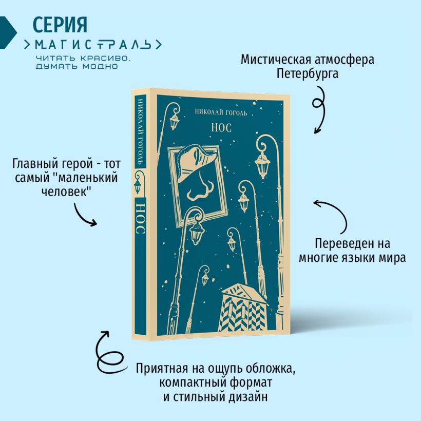 О Петербург, невероятный и притягивающий магнитом! Здесь как нигде можно заметить, как среди романтичных крыш неторопливо едет и ваша собственная, если воспарить над городом очарованной душой. Николай Васильевич Гоголь тоже воспарил — а потом спустился обратно, взялся за перо и стал живописать его жителей. У мастера слова получилось именно «живо» — словно их можно потрогать и даже поговорить с ними. Конечно, если вас не испугают их странности (убежавший нос, например...). Еще вчера вы не обратили бы на на этих людей никакого внимания, а теперь никогда не забудете. И обязательно узнаете их, когда повстречаете...