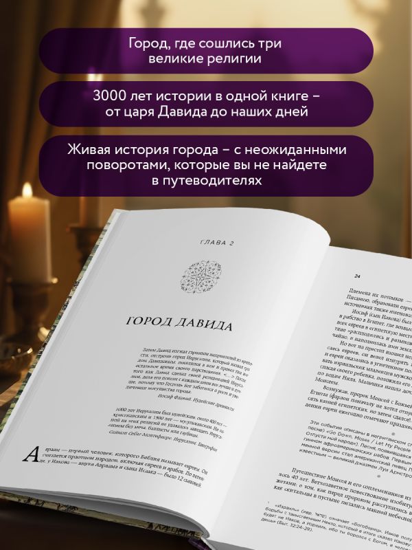 Книга о том, какой он на самом деле — город Давида, город Иисуса, город османов, город римлян, раввинов, византийский, исламский, город крестоносцев, — одним словом, величайший из городов?! Нам предстоит удивительное путешествие по всем слоям истории, по всей его безграничной культуре, соединившей, казалось бы, несоединимое. Эпохи рассветов, закатов и даже полного забвения, умирания и чудесного воскресения! Чего только не пережил Иерусалим — сверкающий, загадочный, колыбель мудрости всего мира.