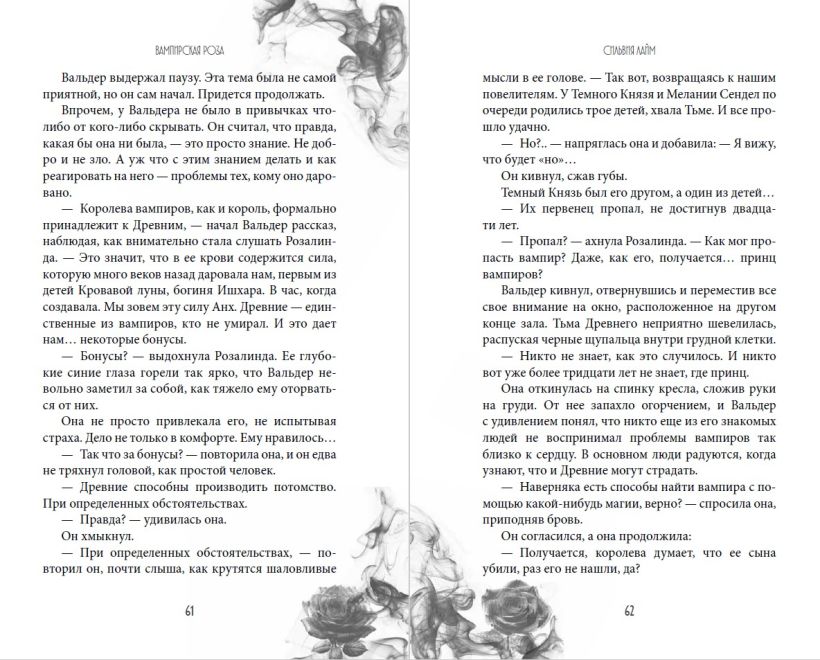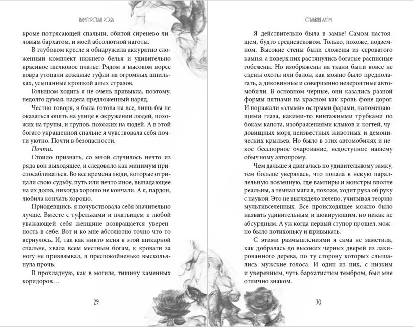 О, Сильвия Лайм, определённо, атлет по поднятию метафорических тяжестей и применению их в своих произведениях. Ибо так тонко описывать эмоции, ощущения, чувства – высший пилотаж, не иначе. Аж мурашки по коже. И не только будоражаще-приятные от чувственных сцен, но леденяще-пугающие в тревожных эпизодах. Словно главная героиня не та вампирская Роза из истории, а я сама в своей реальности.