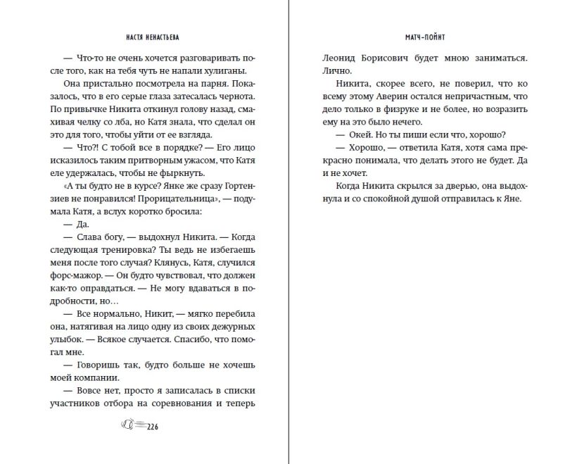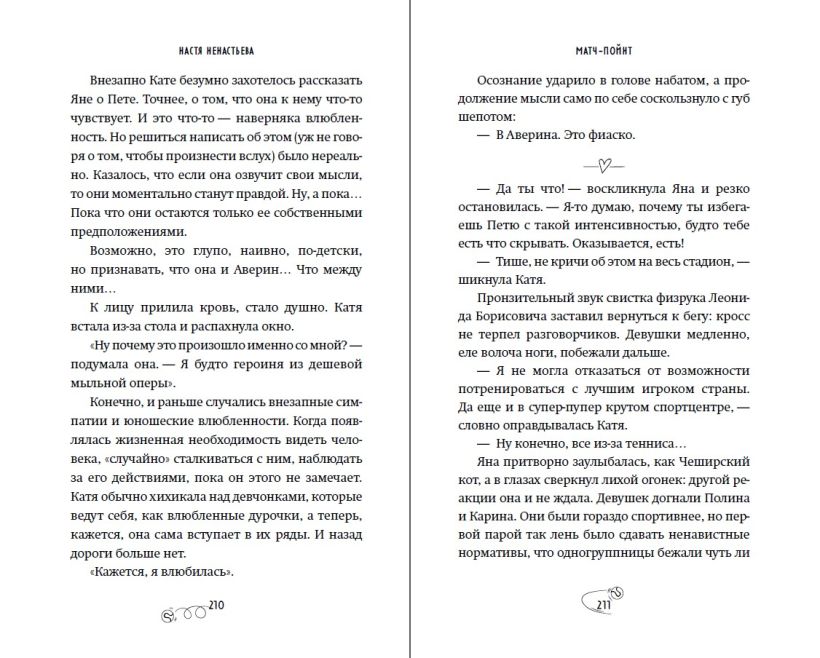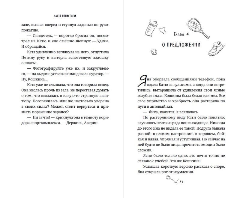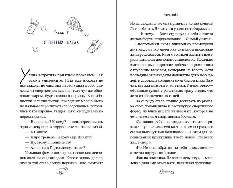 Итого: безумно приятная и романтическая история. И самое лучшее в ней то, что она правдоподобная! Автор не делает волшебные переходы, где герои за сутки превращаются в профессионалов тенниса или из робкой девушки в звезду сцены. История близка к жизни, но в лучшем её проявлении.