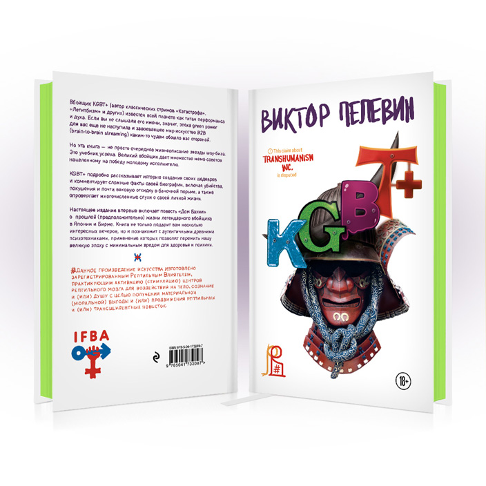 Перед вами подарочное издание книги Виктора Пелевина "KGBT+", выпущенное ограниченным тиражом. Книга в суперобложке, с цветным обрезом и закладкой в виде ленточки ляссе.
