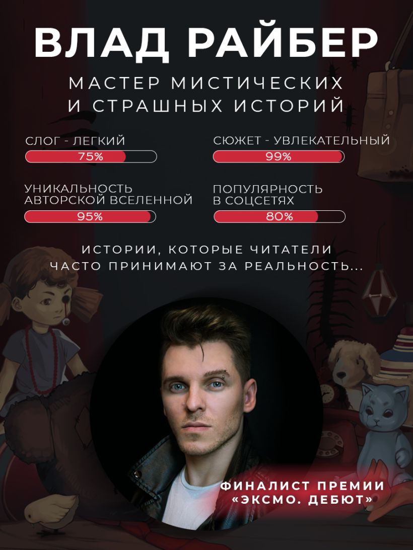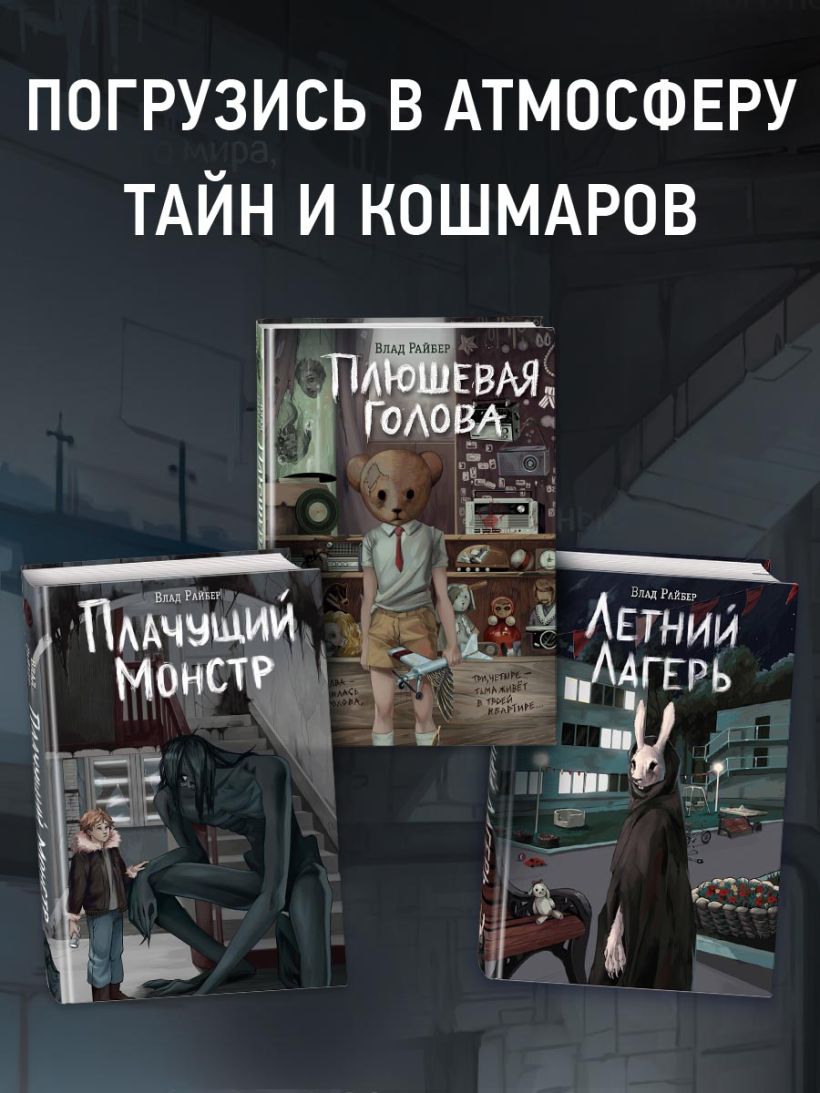 Новинка финалиста премии «Эксмо.Дебют» Влада Райбера, чьи хоррор-рассказы мгновенно стали бестселлерами. Этот сборник — по-настоящему мрачные, психологически напряжённые истории, где за каждым поворотом скрывается настоящий ужас без прикрас. Внутри множество зарисовок с монстрами, форзацы с шифром и картой, а также атмосферная вёрстка! Книга перенесёт вас в небольшой городок, в котором самые пугающие истории внезапно оказываются реальностью. На каждой улице есть своя зловещая легенда. Недалеко от центра стоит старый ларёк, приманивающий людей ностальгическими товарами. С виду это тихий, захолустный городок, но жизнь здесь пострашнее любого кошмара. В одном старом доме есть квартира, пожирающая людей. Глянешь в глазок, а там смеётся карлик с малиновой кожей. В кромешной тьме подъездов прячется существо с когтями-бритвами. По ночным улицам бродит пионер с головой плюшевого медведя. А на окраине города есть бездонный провал — говорят, он тянется до самого ада. Книга — отличный подарок на Хэллоуин, день рождения или Новый год. Порадуйте себя или близких этой пугающей, но захватывающей историей в духе «Зайчика» Дмитрия Мордаса. Познакомьтесь с другими книгами автора: «Летний лагерь» «Плачущий монстр» «Потусторонний город» «Кошмарный звонок» Продолжение следует...