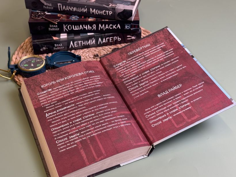 Атмосферное серийное оформление — соберите целую полку страшных историй от автора! Внутри красочные форзацы с изображениями и досье монстров, необычное внутреннее оформление с записками, иллюстрациями и пометками. Книга станет настоящим приключением!