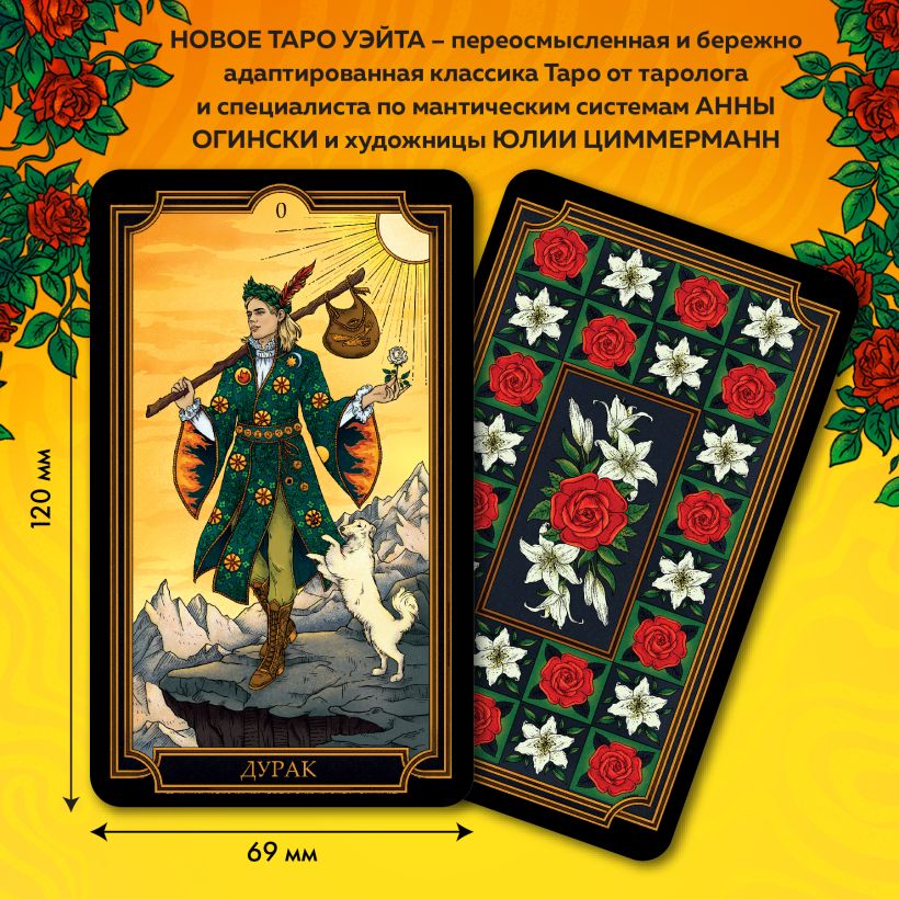 «НОВОЕ ТАРО УЭЙТА» — переосмысленная и бережно адаптированная классика Таро от таролога и специалиста по мантическим системам АННЫ ОГИНСКИ и художницы ЮЛИИ ЦИММЕРМАНН. Яркие цвета, тщательно прорисованные лица и одежда, красивейшие пейзажи и глубокое уважение к образам и смыслам оригинального Таро Уэйта делают эту колоду идеальной первой колодой начинающего таролога и отличным подарком всем ценителям классического подхода к Таро.