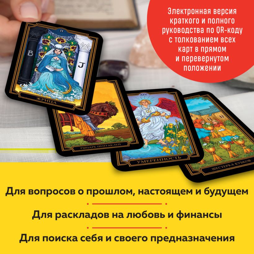 - 78 ярких детализированных карт Таро с классическими образами и сюжетами.
