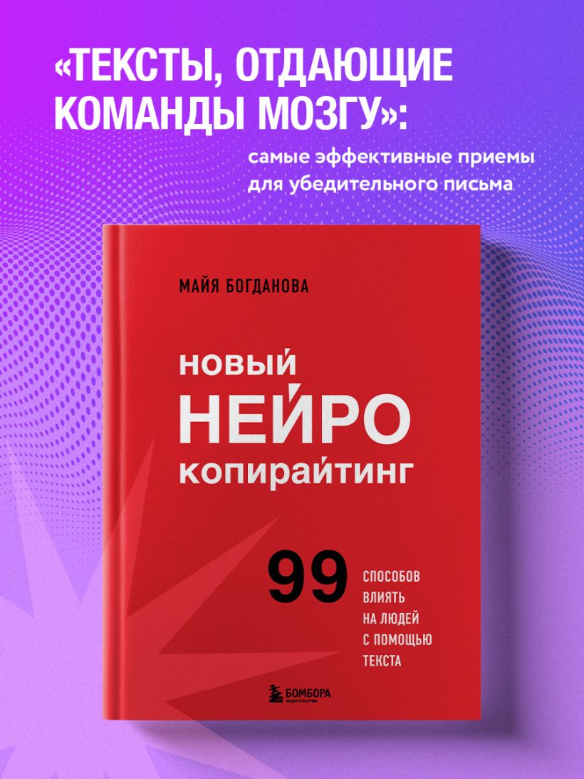 В этой книге собрано 99 самых эффективных приемов текстового влияния. Как сделать так, чтобы ваши посты продавали, письма убеждали, лонгриды увлекали, а статьи попадали в самое сердце, — объясняет один из самых опытных копирайтеров России Майя Богданова. В основе предлагаемых ею приемов лежат принципы психологии влияния, НЛП-техники, наработки известных копирайтеров и другие способы воздействия на сознание читателя. Каждая из глав посвящена одному инструменту текстового влияния. Поэтому их можно читать в любом порядке, как подряд, так и исходя из конкретной задачи, требующей быстрого решения.