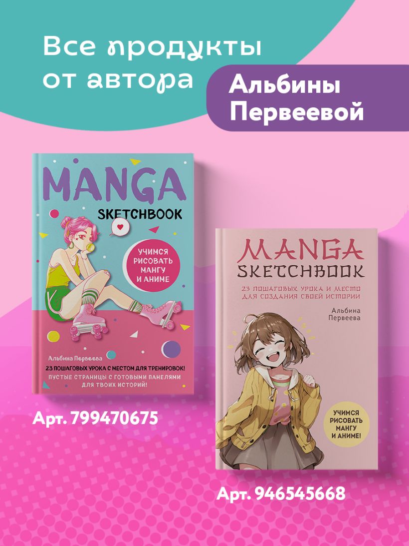 А вот и второй скетчбук от Альбины Первеевой — автора бестселлера «Manga Sketchbook. Учимся рисовать мангу и аниме! 23 пошаговых урока и место для создания своей истории». С этим скетчбуком ты сможешь еще лучше прокачать свои навыки и научиться выражать на бумаге то, что рождается в твоем воображении. А еще, уже сейчас ты сможешь воплотить мечты в реальность и создать свою собственную мангу!