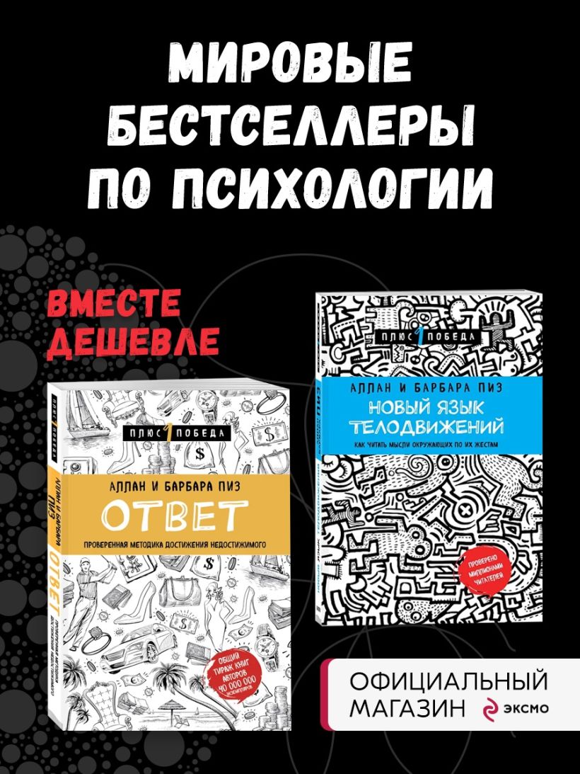 Комплект из 2 книг авторов Аллана и Барбары Пиз. Редкий пример западных авторов, страстно влюбленных в Россию. И не удивительно — именно у нас их книги пользуются феноменальной популярностью. На сегодня только главного бестселлера Аллана и Барбары Пиз "Язык телодвижений" было продано более 20 миллионов экземпляров. В 1992 году авторы этой книги проводили мастер-класс в Кремле для 300 российских политиков. Тема: "Как вызвать доверие у мировых СМИ". На мероприятии присутствовал и будущий президент России Владимир Путин.