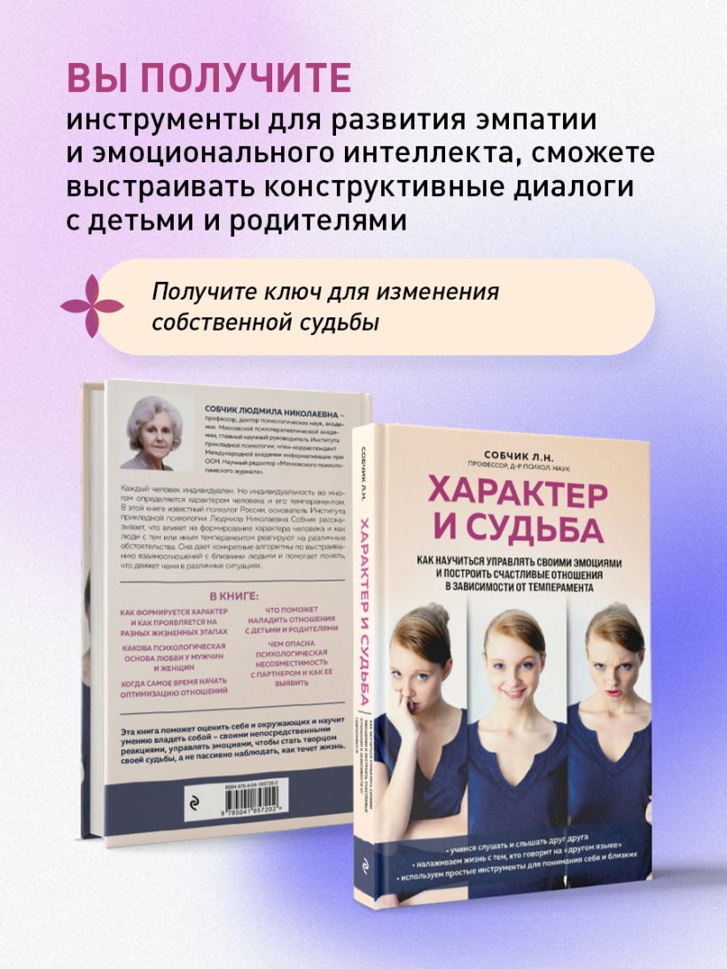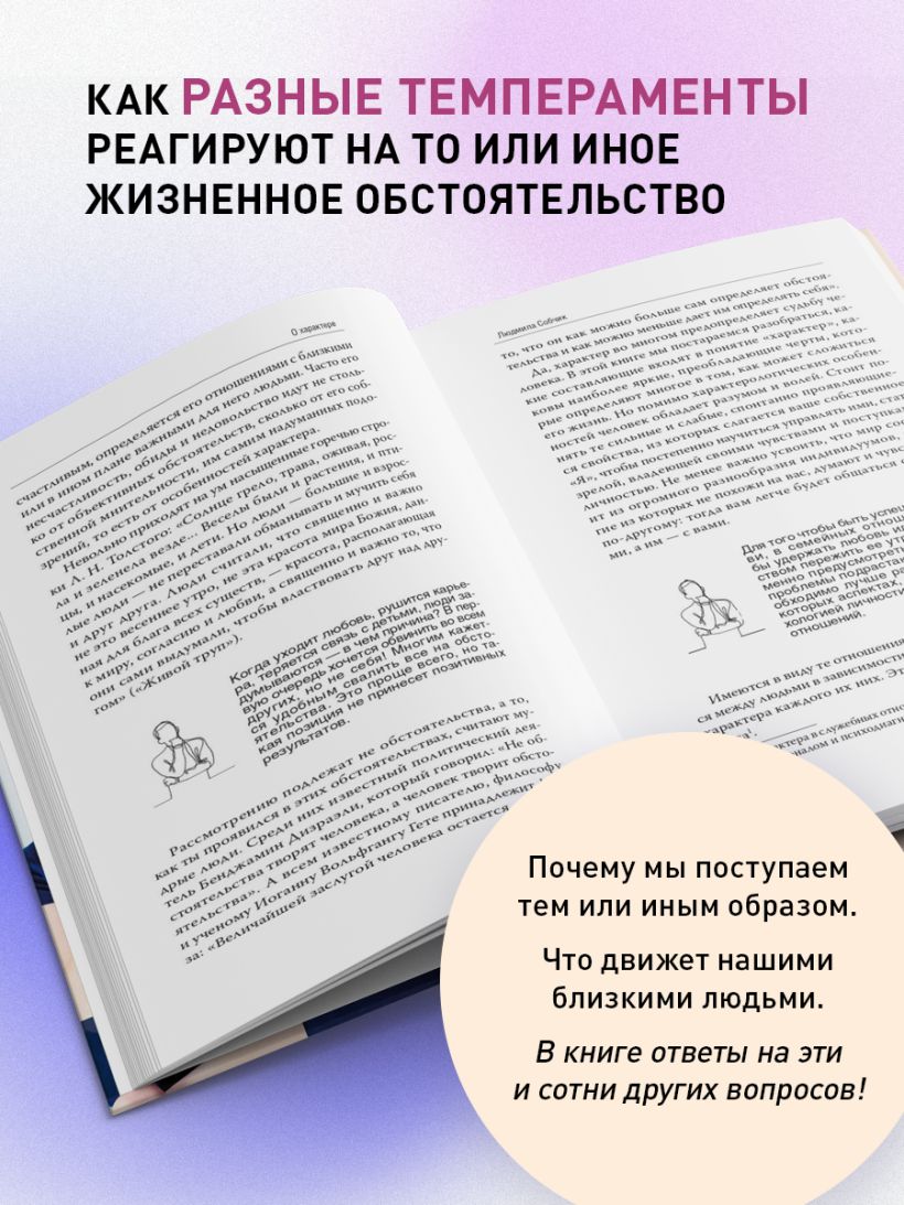 Каждый человек индивидуален. Но индивидуальность во многом определяется характером человека и его темпераментом. В этой книге самый известный психолог России, основатель Института психологии Людмила Николаевна Собчик рассказывает, что влияет на формирование характера человека и как люди с тем или иным типом реагируют на различные обстоятельства. Она дает конкретные алгоритмы по выстраиванию взаимоотношений с близкими людьми и помогает понять, что движет близким человеком в различных ситуациях.
