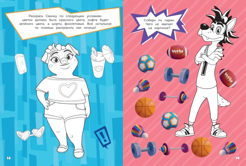 Перед тобой не просто раскраска, а СУПЕРраскраска. В ней тебя ждут раскраски, игры, головоломки, поиск отличий и многое другое!