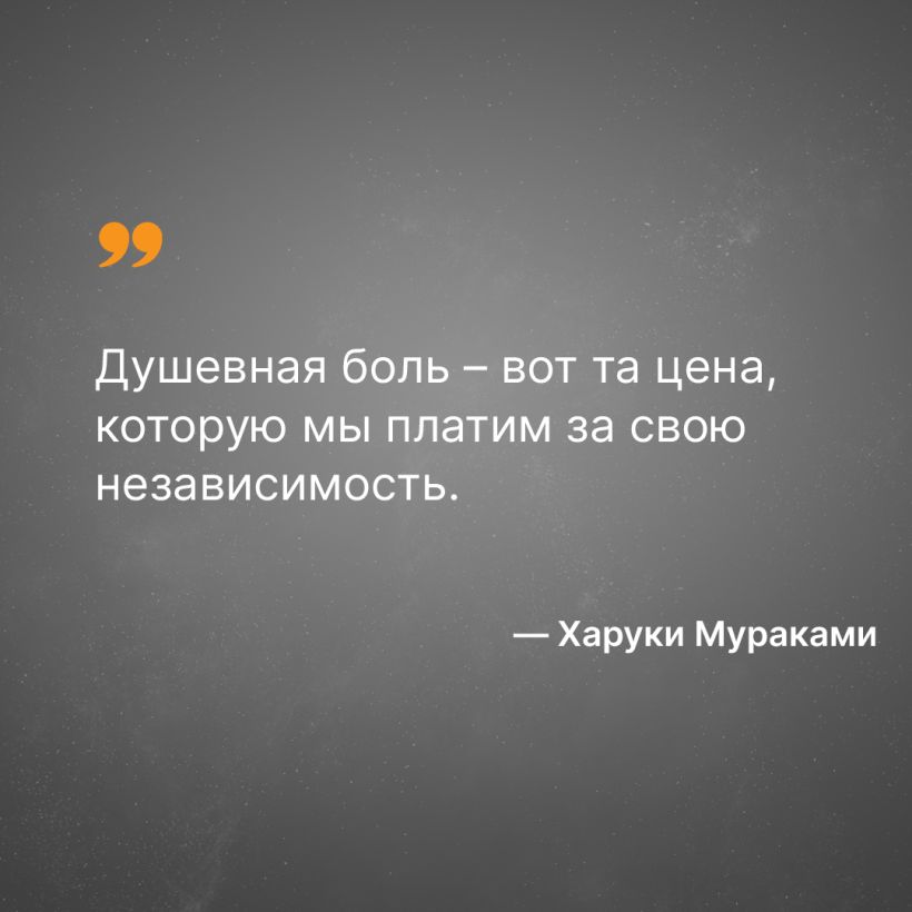 Каждый найдет в этой книге что-то для себя. И тот, кто хочет избавиться от лишнего, и тот, кому необходимо научиться ставить задачи и не сдаваться, эффективно бороться с ленью и любить себя. Кроме того, Харуки Мураками отличный «проводник» правильной музыки и мастер находить необыкновенно тонкие параллели. Оказывается, после 42 километрового забега больше всего радуешься тому, что наконец-то можно остановиться. Разве это не о нашей жизни? ;)