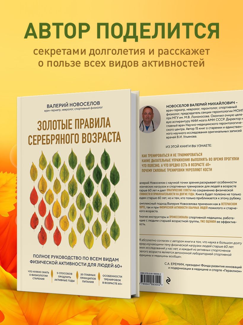 «Дорогие друзья, все мы хотим жить долго и счастливо, сохраняя высокую энергию и молодой задор. Однако не всегда наши представления о высоком качестве жизни совпадают с научными знаниями. Из этой книги вы узнаете, как заниматься спортом без вреда для здоровья. Уникальность данного издания состоит в том, что каждый процесс рассматривается с позиции возрастной физиологии и все рекомендации даны с учетом практического опыта, накопленного спортивной медициной и спортивной физиологией. Будьте здоровы — занимайтесь спортом!» — Е. В. Линде, к. м. н., лауреат премии Правительства г. Москвы в области медицины, врач по спортивной медицине высшей категории, руководитель Центра спортивной медицины «МАТЕРИА МЕДИКА»
