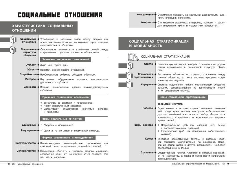 Она представит материал школьного курса обществознания за 6—11 классы в доступном изложении, а особый макет издания выделит главное и структурирует информацию для наилучшего запоминания. Активные поля обеспечат быстрый и точный поиск информации, сохраняя ваше время и увеличивая продуктивность. В справочнике вы найдете важные сведения по разделам «Экономика», «Социальные отношения», «Право», «Человек и общество» и «Политика». Теоретические блоки сопровождаются иллюстрациями, схемами и таблицами для комплексной подготовки к ОГЭ и ЕГЭ по обществознанию.