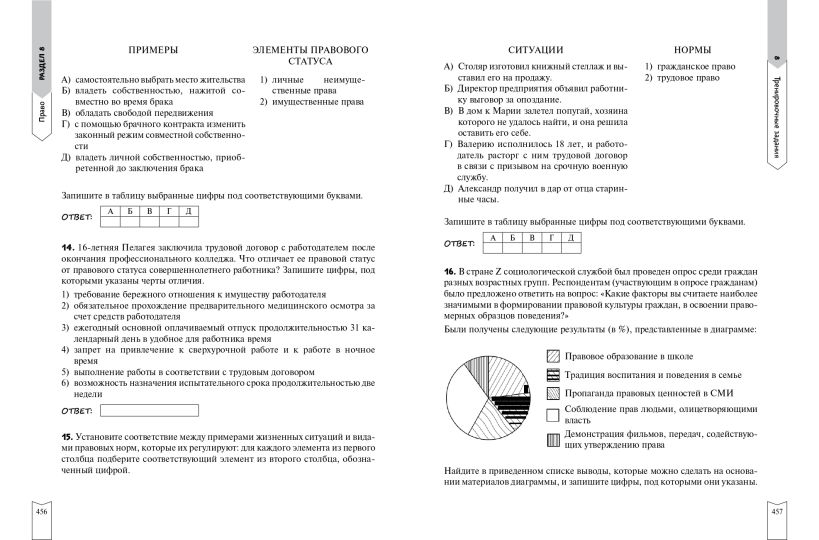 Пособие адресовано учащимся старших классов, планирующим сдавать ЕГЭ по обществознанию. Тренировочные задания позволят систематически, при прохождении каждой темы, готовиться к экзамену. В сборнике представлены задания разных типов по всем темам ЕГЭ с ответами и критериями оценивания. Задания максимально приближены к реальным, используемым на экзамене, но распределены по темам в порядке их изучения в 10—11 классах старшей школы. Пособие будет полезно учителям обществознания, так как даёт возможность эффективно организовать подготовку учащихся к ЕГЭ непосредственно на уроках, в процессе изучения всех тем. Работая с книгой, можно последовательно отработать каждую тему, устранить пробелы в знаниях, а также систематизировать изучаемый материал.
