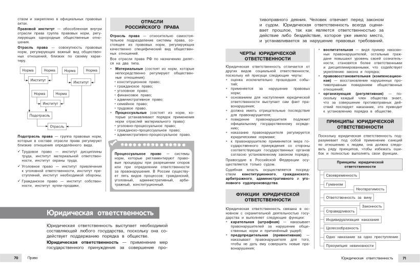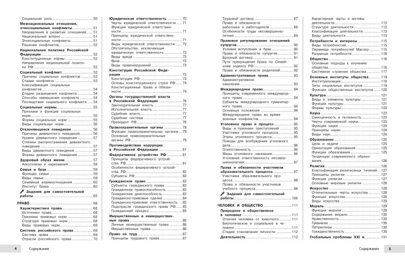 Пособие поможет быстро и эффективно подготовится к урокам, различным формам текущего и промежуточного контроля, а также к экзаменам. В книге в наглядной и доступной форме приводятся основные сведения за весь школьный курс обществознания. В громоздких учебниках порой бывает сложно найти ответ на какой-то конкретный вопрос. А в данном издании представлена действительно нужная и систематизированная информация, материал изложен последовательно, от простого к сложному, дополняется иллюстрациями, примерами, наглядными схемами и таблицами. В этой книжке для школьников можно найти все основные разделы предмета: «Человек и общество», «Экономика», «Социальные отношения», «Политика», «Право». Справочник обеспечит знание и понимание всех, даже самых сложных тем школьной программы. В нем каждый ученик 6-7-8-9-10-11 классов найдет много полезного для своего образования, обретет уверенность на уроках, контрольных, ОГЭ и ЕГЭ. Пособие окажет помощь родителям во время занятий с детьми.