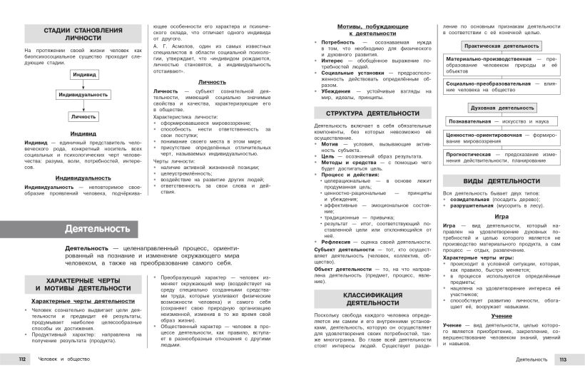 Справочник содержит важные материалы, которые помогут даже в сжатые сроки подготовиться к урокам, ОГЭ и ЕГЭ по обществознанию. Теория школьного курса изложена в наглядной форме и дополняется блоком практических заданий c ответами для комплексного закрепления знаний. Информация представлена в максимально удобной и эффективной для изучения и запоминания форме — в схемах и таблицах, что обеспечит плодотворную и быструю подготовку к урокам, контрольным и различным экзаменам. В пособии можно найти все основные разделы предмета: «Человек и общество», «Экономика», «Социальные отношения», «Политика», «Право». В книге ученики 6-7-8-9-10-11 классов найдут много полезного для своего образования. Книжка станет незаменимым помощником для всех, кто хочет подтянуть свои знания или вспомнить уже изученные темы, подготовиться к урокам и экзаменам, а также будет прекрасным дополнением к учебнику и просто облегчит процесс учебы. Справочник будет полезен и для занятий родителей с детьми.