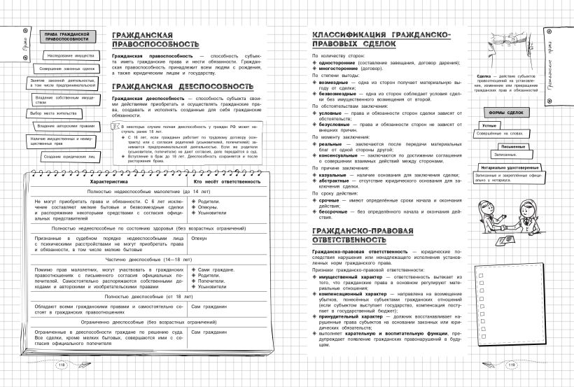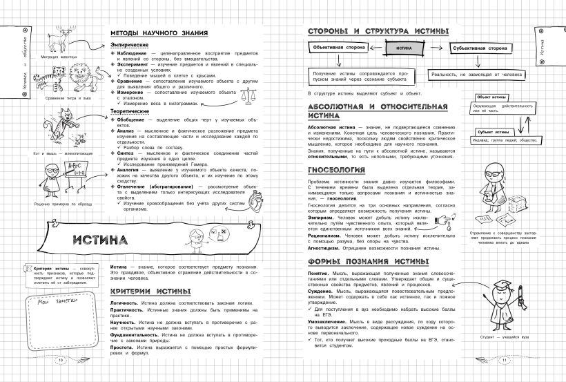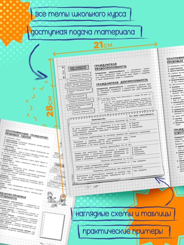 Благодаря наглядной подаче теории с примерами, схемами, а также забавными рисунками, текст становится доступным и интересным. Визуальный подход обеспечивает легкость восприятия и запоминания информации, ведь она оформлена в виде конспектов, словно ученик писал их сам. Всевозможные иллюстрации и места для собственных примеров и примечаний помогут сделать процесс обучения максимально простым и приятным! А при желании можно взять маркеры и сделать свой конспект еще более уникальным и персонализированным!