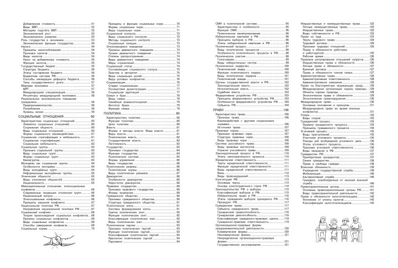 Справочник содержит важные материалы, которые помогут даже в сжатые сроки подготовиться к урокам, ОГЭ и ЕГЭ по обществознанию. Теория школьного курса изложена в наглядной форме и дополняется блоком практических заданий c ответами для комплексного закрепления знаний. Информация представлена в максимально удобной и эффективной для изучения и запоминания форме — в схемах и таблицах, что обеспечит плодотворную и быструю подготовку к урокам, контрольным и различным экзаменам. В пособии можно найти все основные разделы предмета: «Человек и общество», «Экономика», «Социальные отношения», «Политика», «Право». В книге ученики 6-7-8-9-10-11 классов найдут много полезного для своего образования. Книжка станет незаменимым помощником для всех, кто хочет подтянуть свои знания или вспомнить уже изученные темы, подготовиться к урокам и экзаменам, а также будет прекрасным дополнением к учебнику и просто облегчит процесс учебы. Справочник будет полезен и для занятий родителей с детьми.