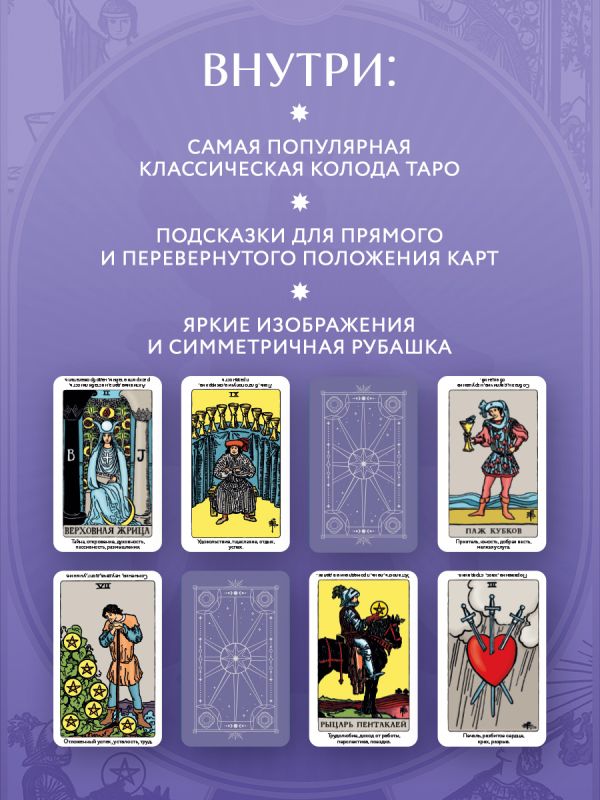 • Классическая колода Таро Уэйта из 78 карт с иллюстрациями Памелы Колман Смит.